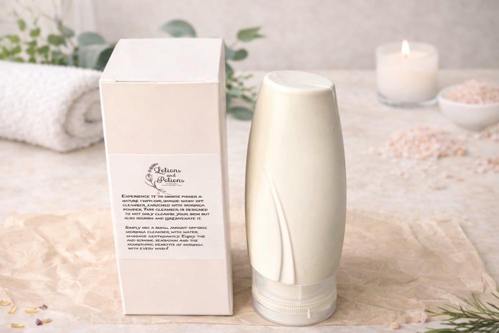 Key Benefits:Gentle Exfoliation: The fine particles of moringa powder provide mild exfoliation, helping to remove dead skin cells and reveal a brighter, smoother complexion.Nutrient-Rich Formula: Packed with vitamins A, C, and E, our cleanser nourishes your skin while cleansing, leaving it feeling refreshed and revitalized.Soothing Properties: Moringa is known for its anti-inflammatory benefits, making this cleanser ideal for all skin types, including sensitive skin. It helps calm irritation and redness, promoting an even skin tone.Natural Ingredients: We prioritize natural ingredients, ensuring that our cleanser is free from harsh chemicals, making it safe for daily use.How to Use: