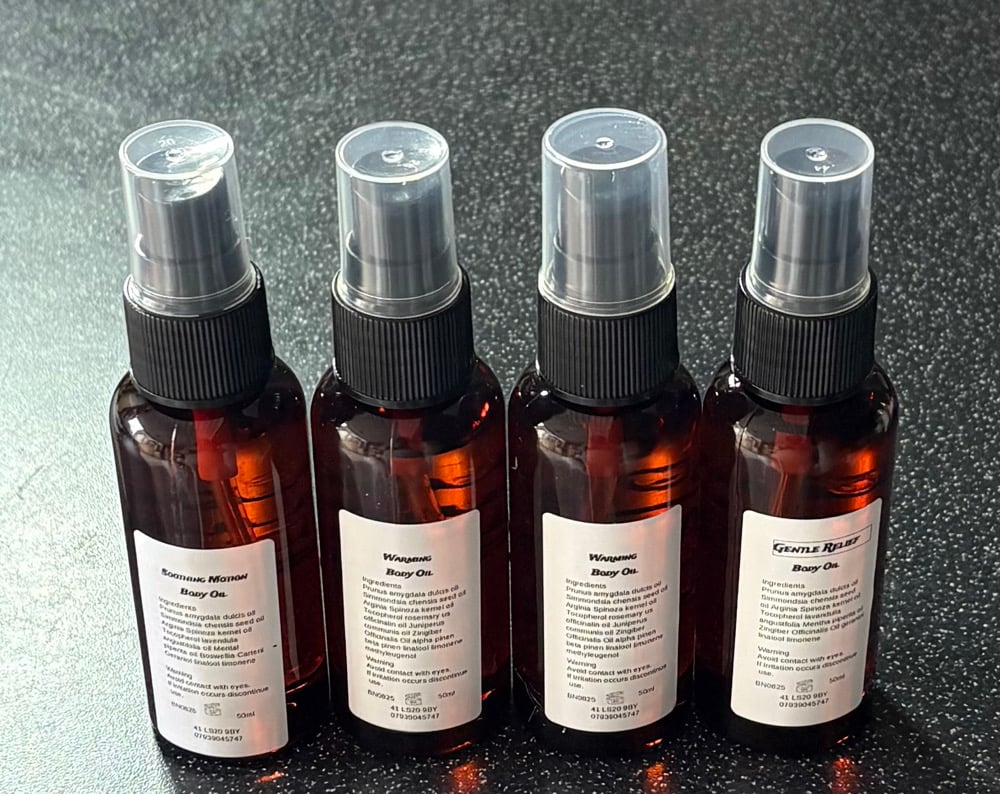 Soothe motionSooth Motion is a luxurious body oil designed to nourish, hydrate, and soothe your skin while providing a calming aromatic experience. This unique blend combines the nourishing properties of sweet almond oil, jojoba oil, and argan oil with the therapeutic benefits of frankincense, lavender, and peppermint.