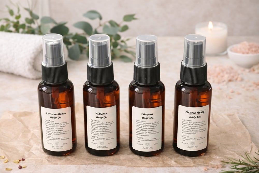 WarmingWarming is an invigorating body oil that combines the stimulating properties of rosemary, juniper, and ginger. This unique blend promotes circulation and provides a comforting warmth, making it perfect for soothing tired muscles. The refreshing aroma of rosemary uplifts the spirit, while juniper detoxifies the skin and ginger adds a spicy, warming touch. Ideal for use after a shower or as part of a relaxing massage, Warming transforms your self-care routine into a rejuvenating experience.